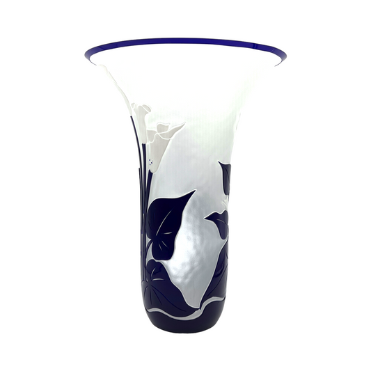Designers Guild - Vase With Cobalt Blue Raised Flowers - Vintage - 11.5"