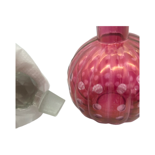Bohemian - Cranberry Pie Crust Polk-A-Dot Perfume Bottle - Vintage - 6.5"
