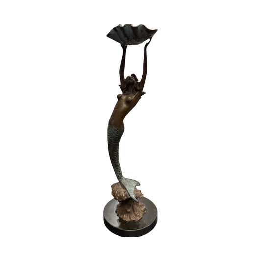 SPI - Bronze Mermaid With Tray Sculpture - Marble Base - 16"