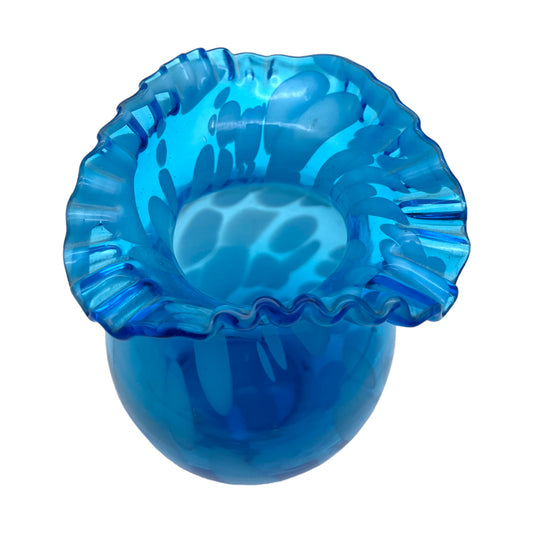 Splatterwave - Handcrafted Blue & White Optic Blown Glass Vase (9")