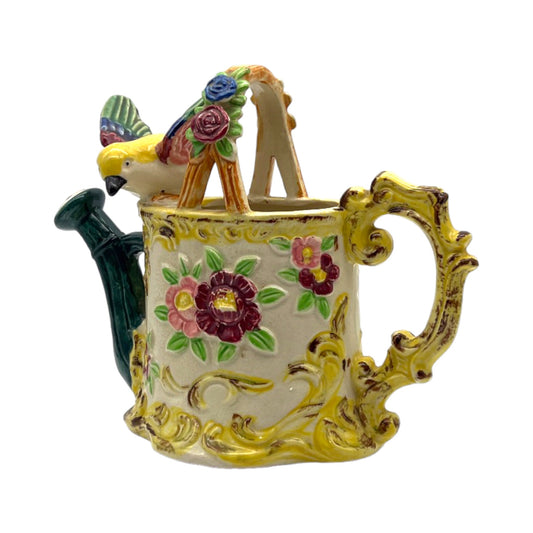 Teapot Basket With Bird - Hand Painted - Vintage - 7"