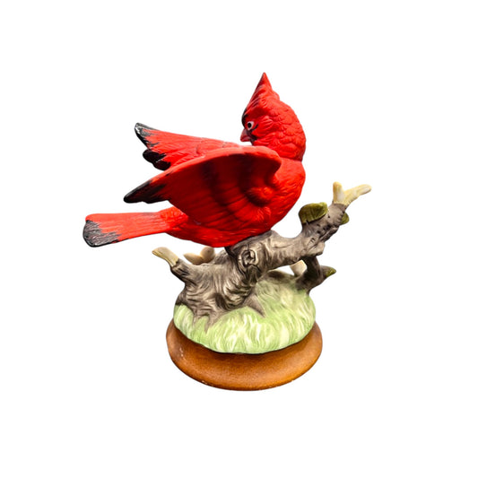 Josef Originals - Cardinal Sitting On A Tree Branch With A Wood Base - 6"