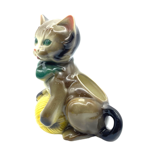 Royal Copley - Kitten With Yellow Ball Of Yarn Planter - Vintage - 8"