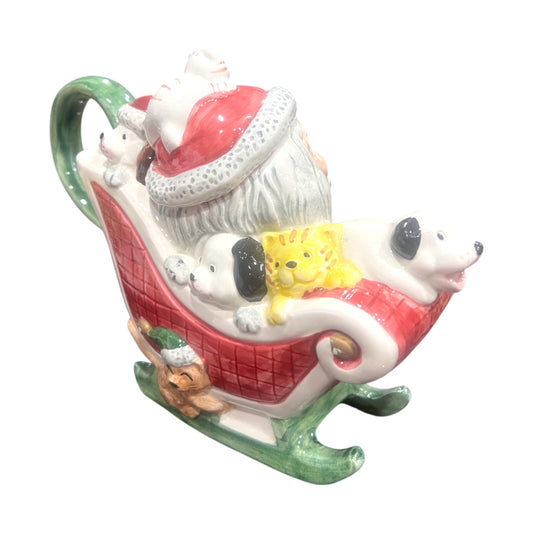 Fitz & Floyd - OCI - Christmas - Santa On A Sleigh Teapot - 7"