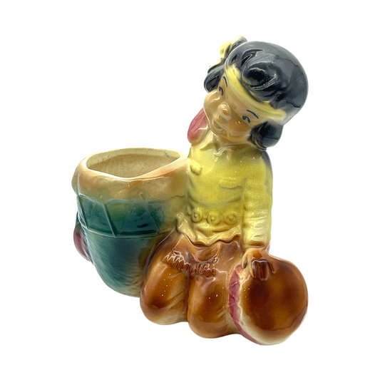 Royal Copley - Indian Boy With Drum Planter - Vintage - 7"