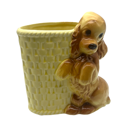Royal Copley - Cocker Spaniel In Basket Planter - Vintage - 5.5"