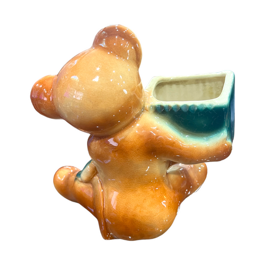 Royal Copley - Teddy Bear Playing Accordion Planter - Vintage - 8"