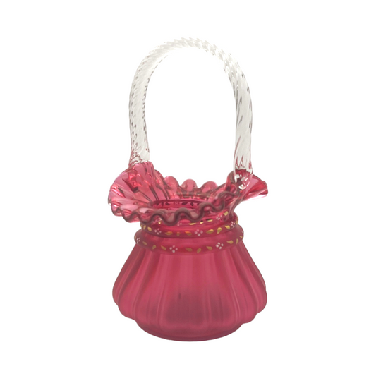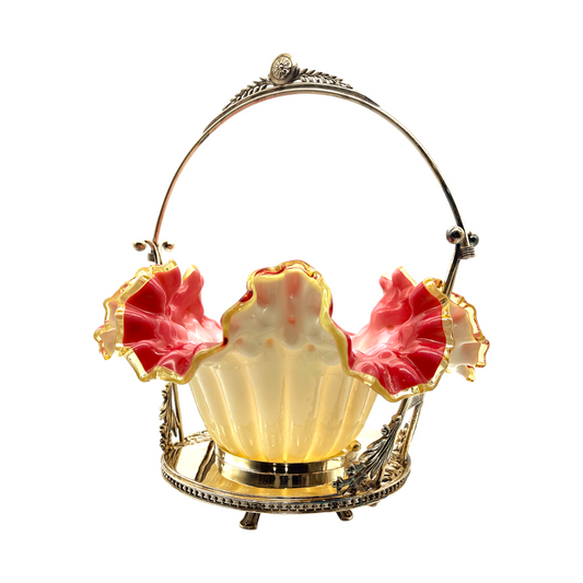 Opalescent Elegance: Cranberry Cased Glass Bridal Basket