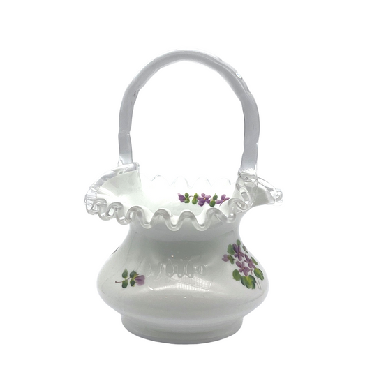 Fenton Art Glass - Violets In The Snow Silver Crest Basket - 7.5"