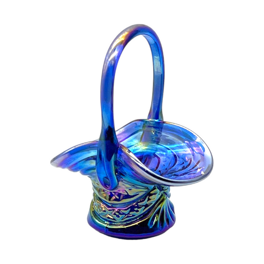 Fenton Art Glass - Blue Carnaval Glass Basket - 5"