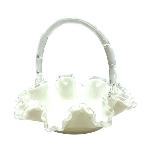 Fenton Art Glass - Silvercrest Ruffled Rim Basket - Vintage - 7.5"
