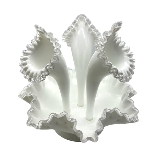 Fenton Art Glass - Cased Milk Glass "Silver Crest" Epergne - Vintage - 11"