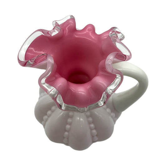 Fenton Art Glass - Dusty Rose Beaded Melon Pitcher Ruffled Edge - Vintage - 6.5"