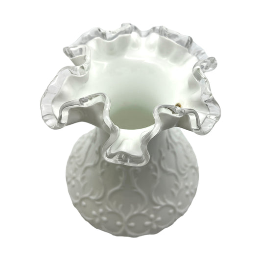 Fenton Art Glass - Spanish Lace Silver Crest Ruffled/Crimped Rim Vase - Vintage - 8.25"