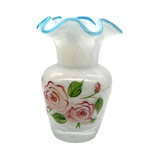 Fenton Art Glass - Teleflora Art Glass Swirl Ruffle Edge Vase - 6"
