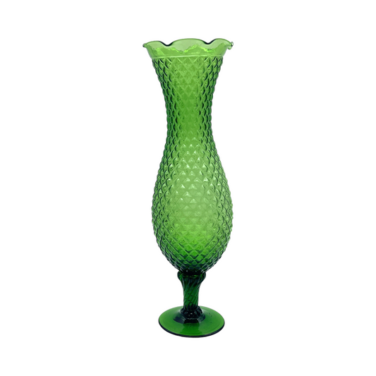 Vintage Green Stemmed Vase - Diamond Pattern - Vintage