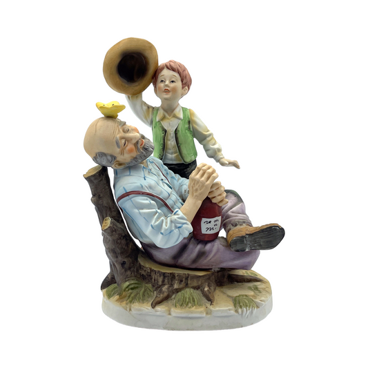 Lefton - Vintage Granddad & Grandson on Tree Stump - Vintage