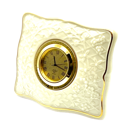 Lenox China - Floral Embossed Small Gold Tone Desk/Table Clock. - Vintage - 3"