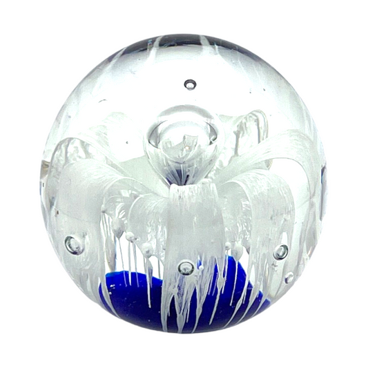 Murano Art Glass - Cobalt Blue & Thick Tracing Bubble Paperweight - 3.5"