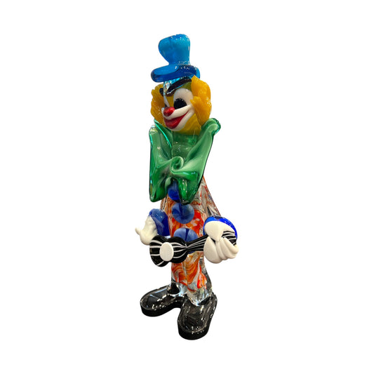 Murano Art Glass - Clown With Guitar Figurine - 10.5"