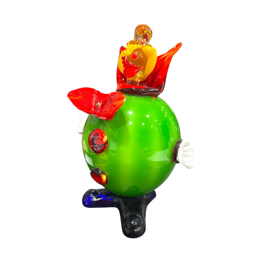 Murano Art Glass - Clown Green Fat Body With Red Squirting Bow Tie - 9.5"