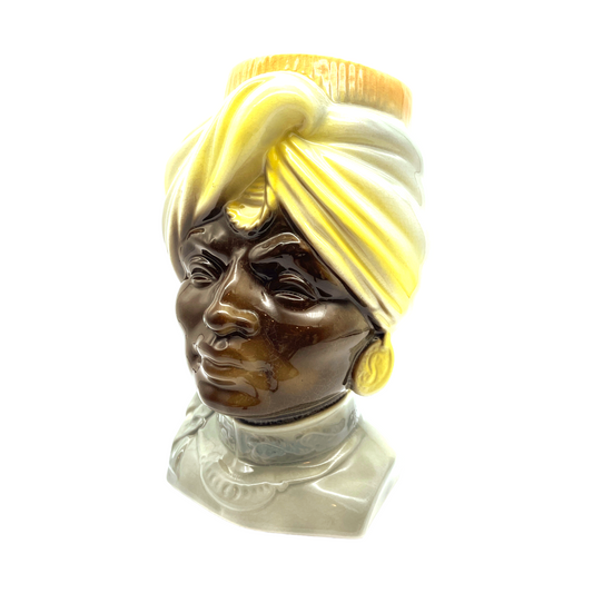 Royal Copley - Yellow/Blue Blackamoor Prince Wall Pocket- Vintage - 8"