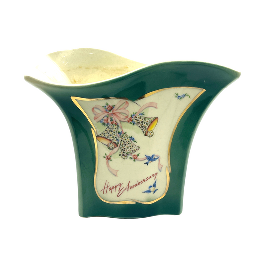 Royal Copley - Happy Anniversary Gold Trim Vase- Vintage - 6.25"