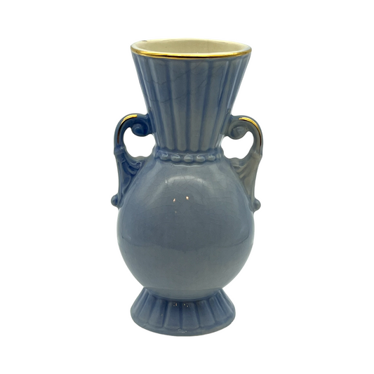 Royal Copley - Faceted Top Double Handle Vase Gold Trim - Vintage - 6"