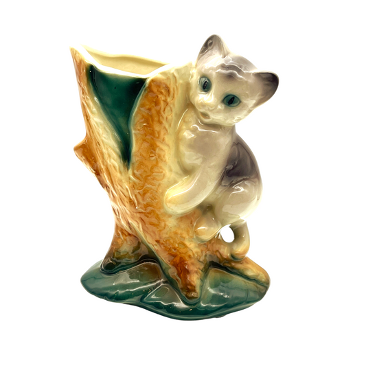 Royal Copley - Kitten On Tree Stump Vase - Vintage - 6.5"