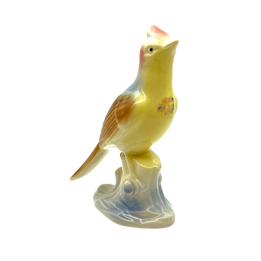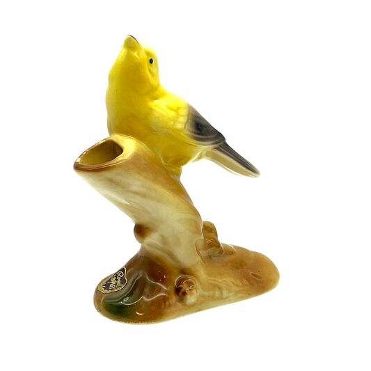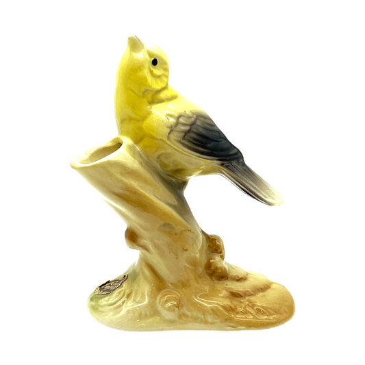 Royal Copley - Yellow Skylark On Tree Stump Figurine - Vintage - 6.5"
