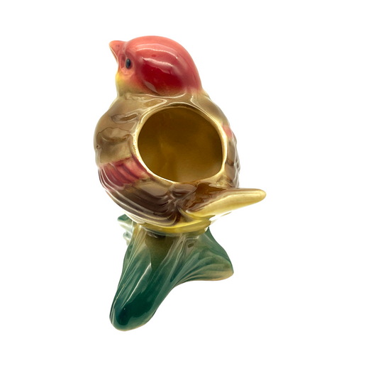 Royal Copley - Warbler On Painted Tree Stump Planter - Vintage - 5"