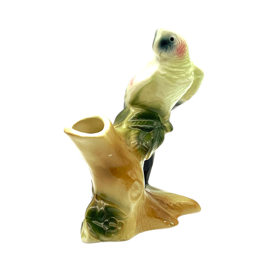 Royal Copley - White Parrot On Tree Stump Planter - Vintage - 5"