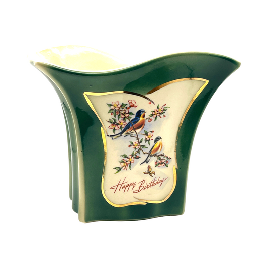 Royal Copley - Happy Birthday Decal Vase- Vintage - 6.25"