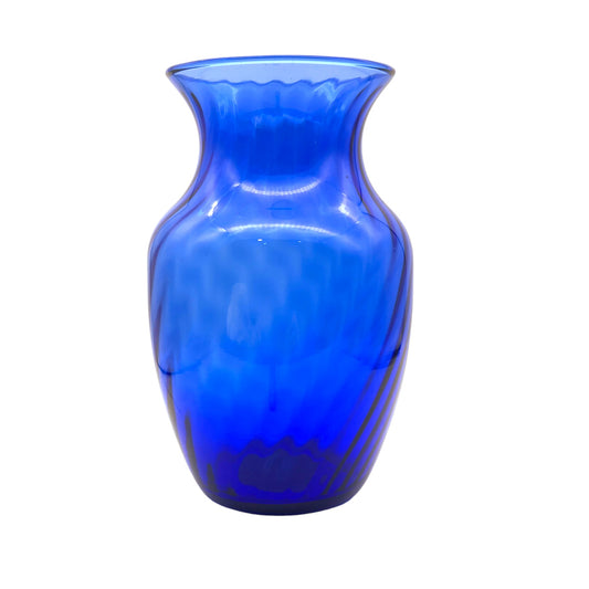 Indiana Glass- Cobalt Blue Swirl Vase - Vintage - 8"