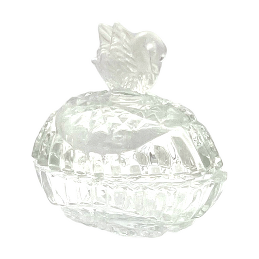 Pressed Glass Trinket Box With Frosted Swan - Vintage 3.5"