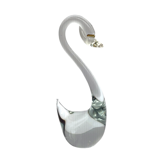 Graceful Reflections - Handcrafted 8" Clear Swan Art Glass