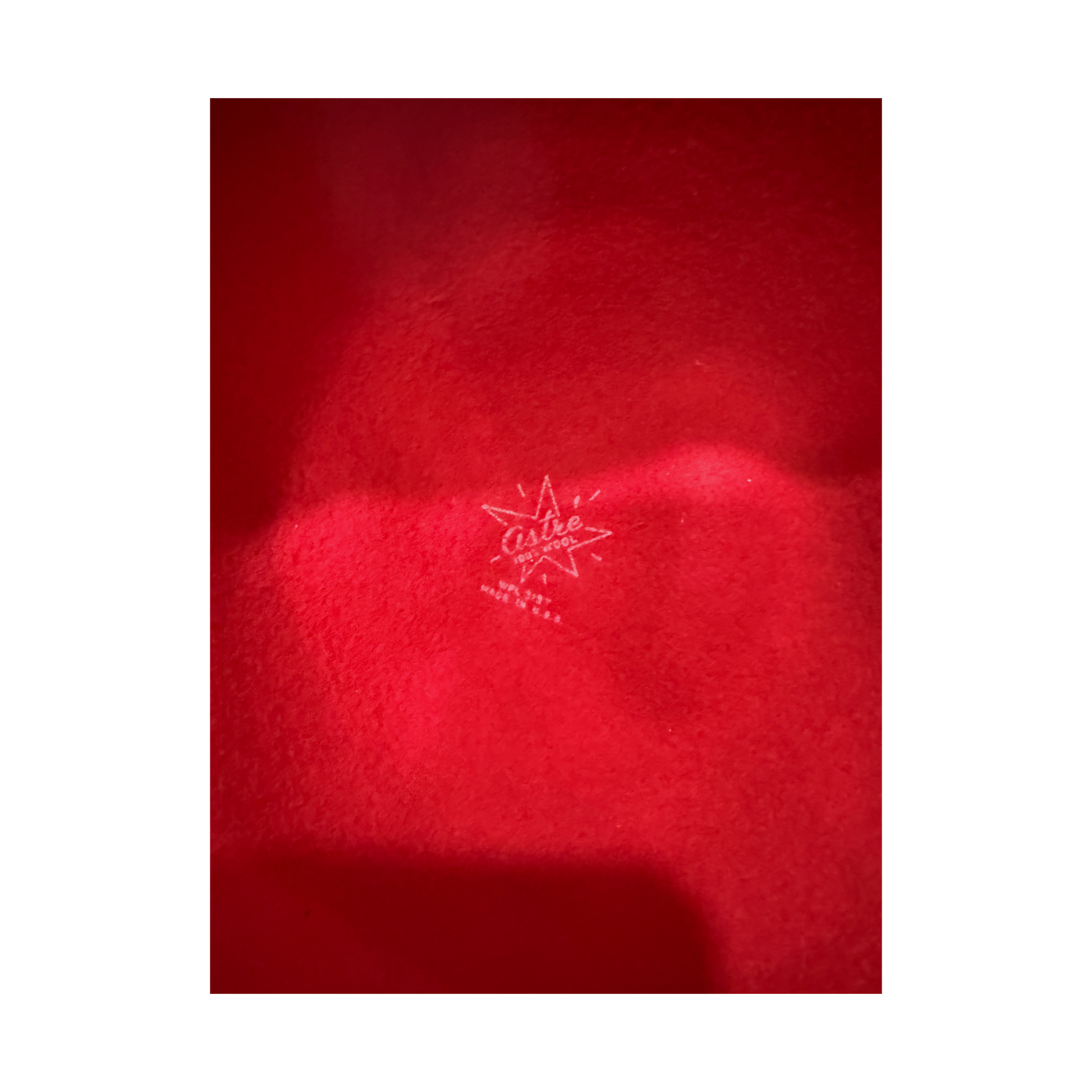Make a bold statement with this vintage Astre red fedora, a stunning blend of classic design and vibrant flair. Crafted from 100% wool, this hat offers both warmth and sophistication, perfect for collectors and fashion enthusiasts alike.