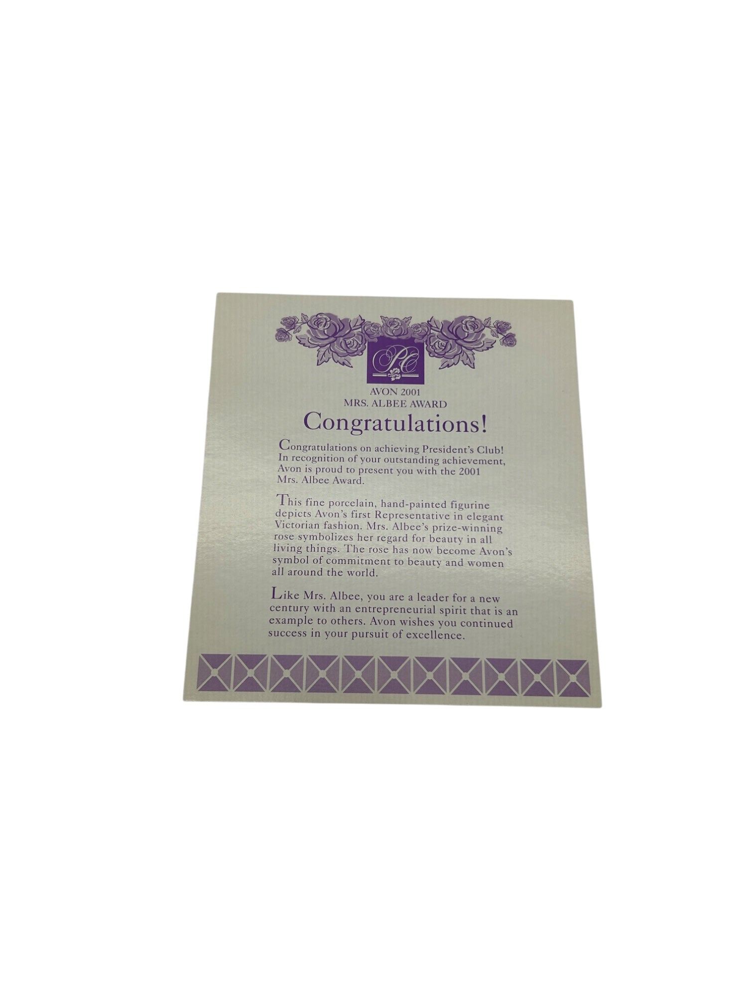 Avon - 2001 Presidents Club Figure Mrs. Albee Award Figurine Statue - NWB - 10"