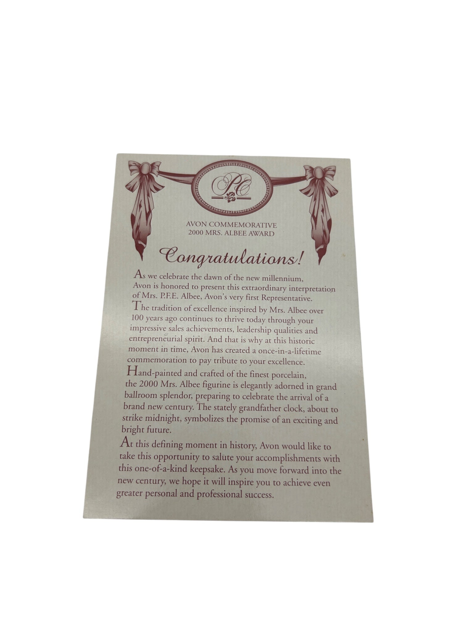 Avon - 2000 Presidents Club Figure Mrs. Albee Award Figurine Statue - NWB - 10"