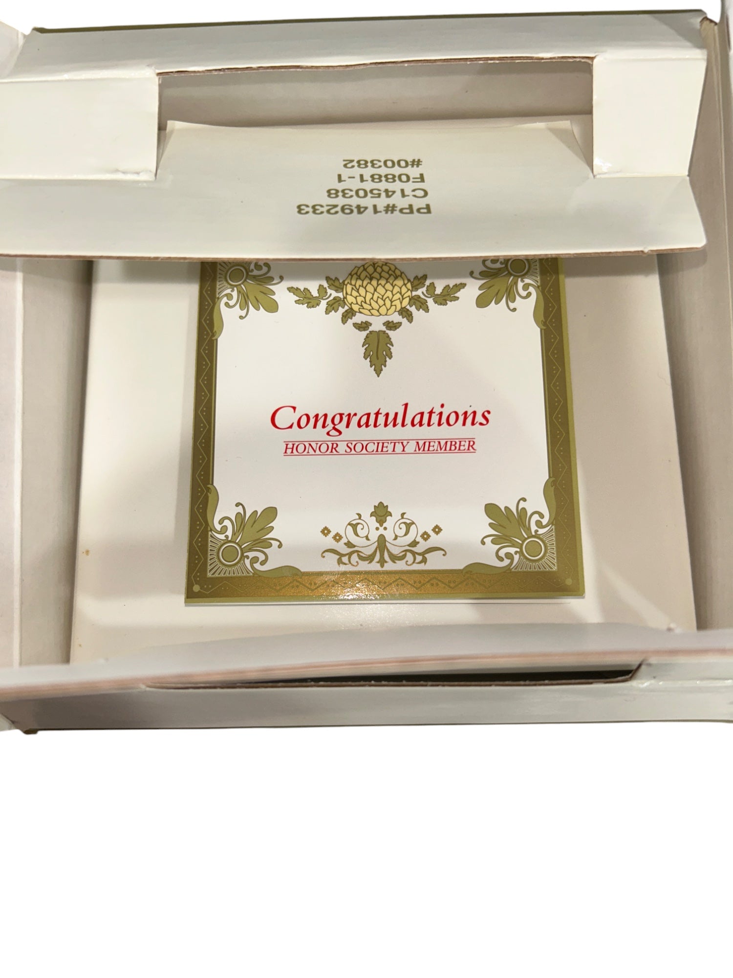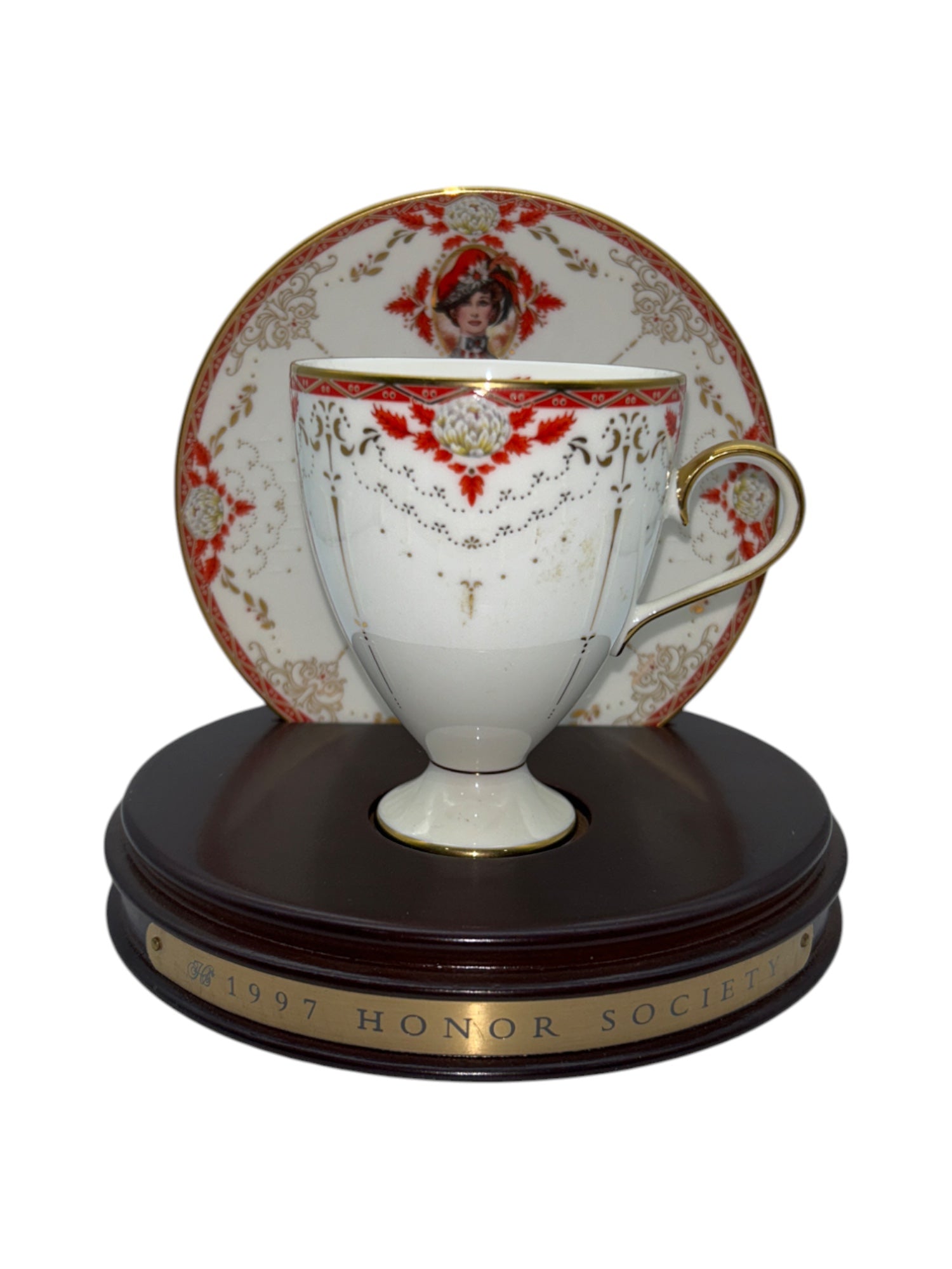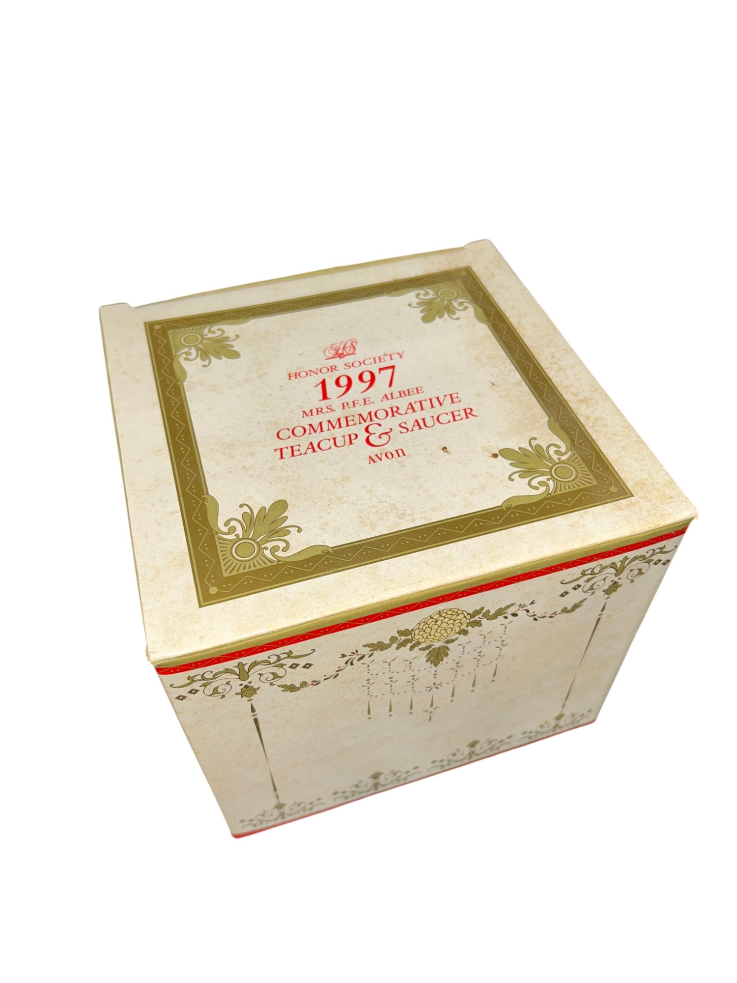Avon - Honor Society - 1997 Commemorative Mrs. Albee Honor Society Tea Cup & Saucer Set with Stand - NWB - 6"