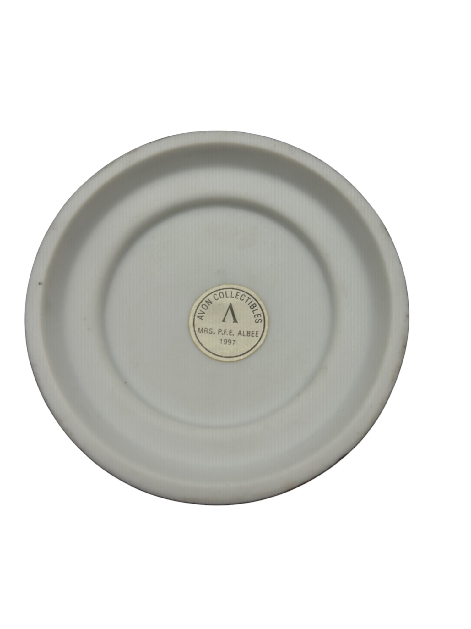 This Avon 1997 Presidents Club Mrs. Albee Award miniature figurine is a finely crafted collectible measuring 4.75 inches tall. Encased in a clear glass dome, it preserves the delicate detail and commemorates a prestigious achievement from the Avon Presidents Club. The figurine serves as both a decorative piece and a meaningful memento, ideal for collectors and Avon enthusiasts alike. Its elegant design and protective dome make it suitable for display on desks, shelves, or curio cabinets, preserving its condition while honoring a notable milestone.