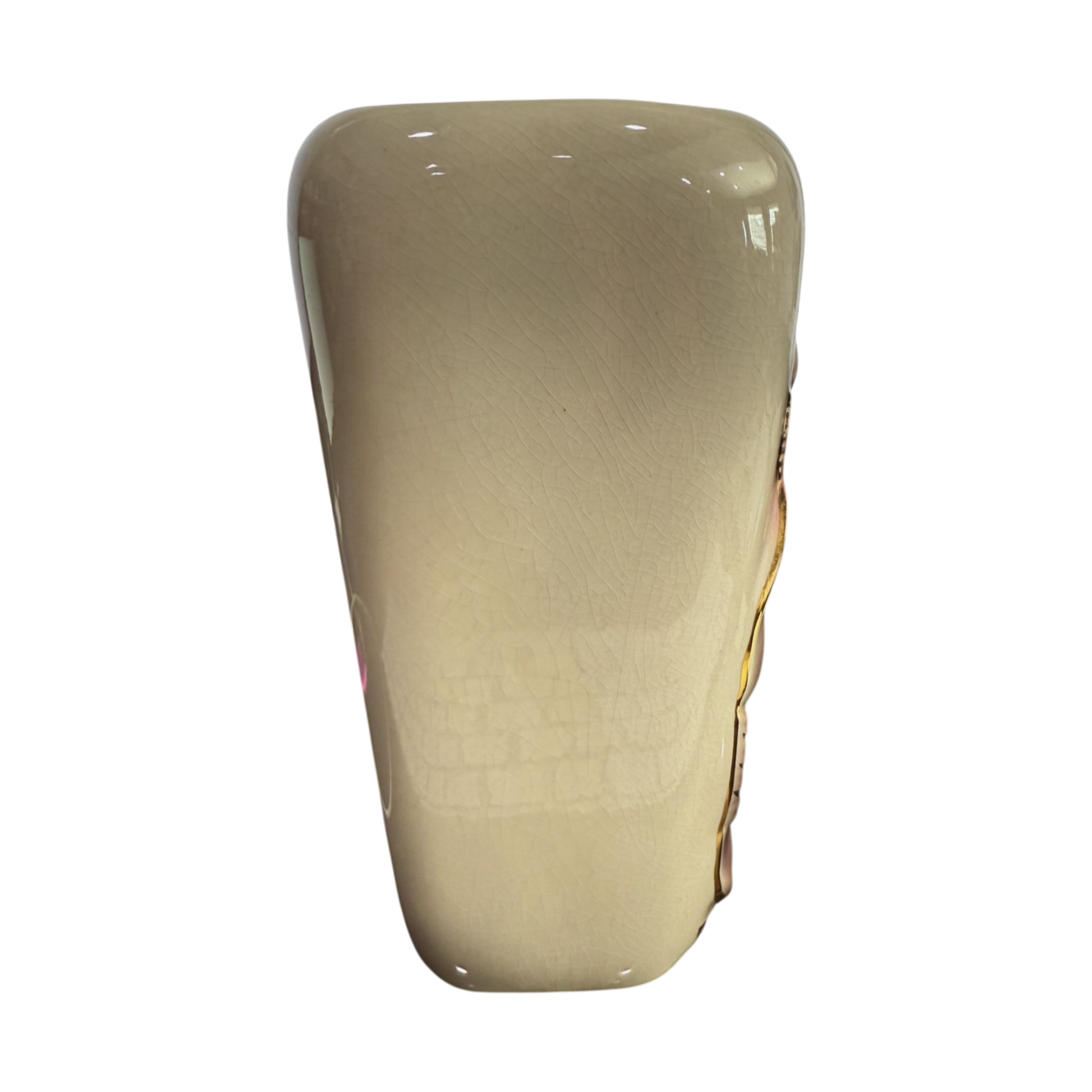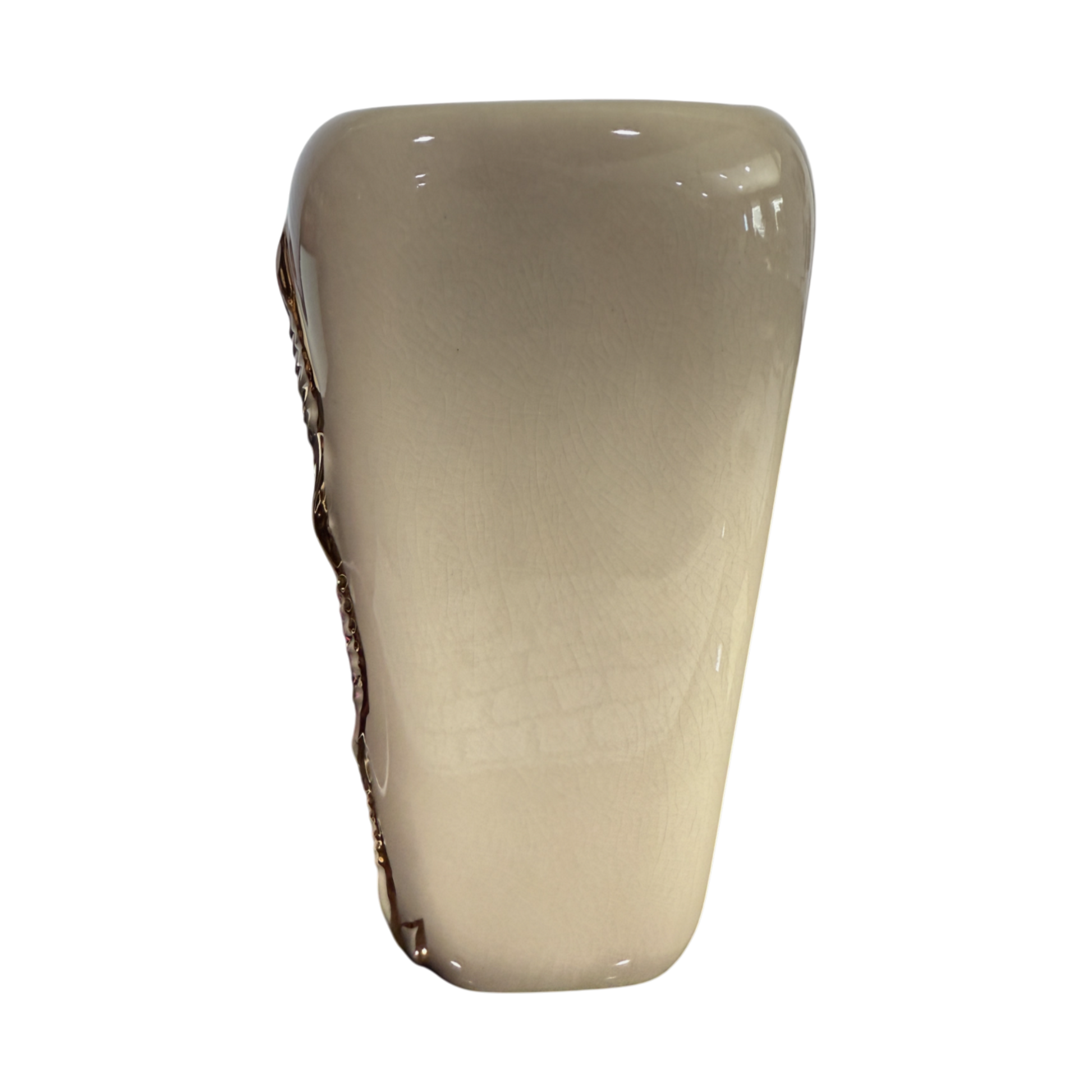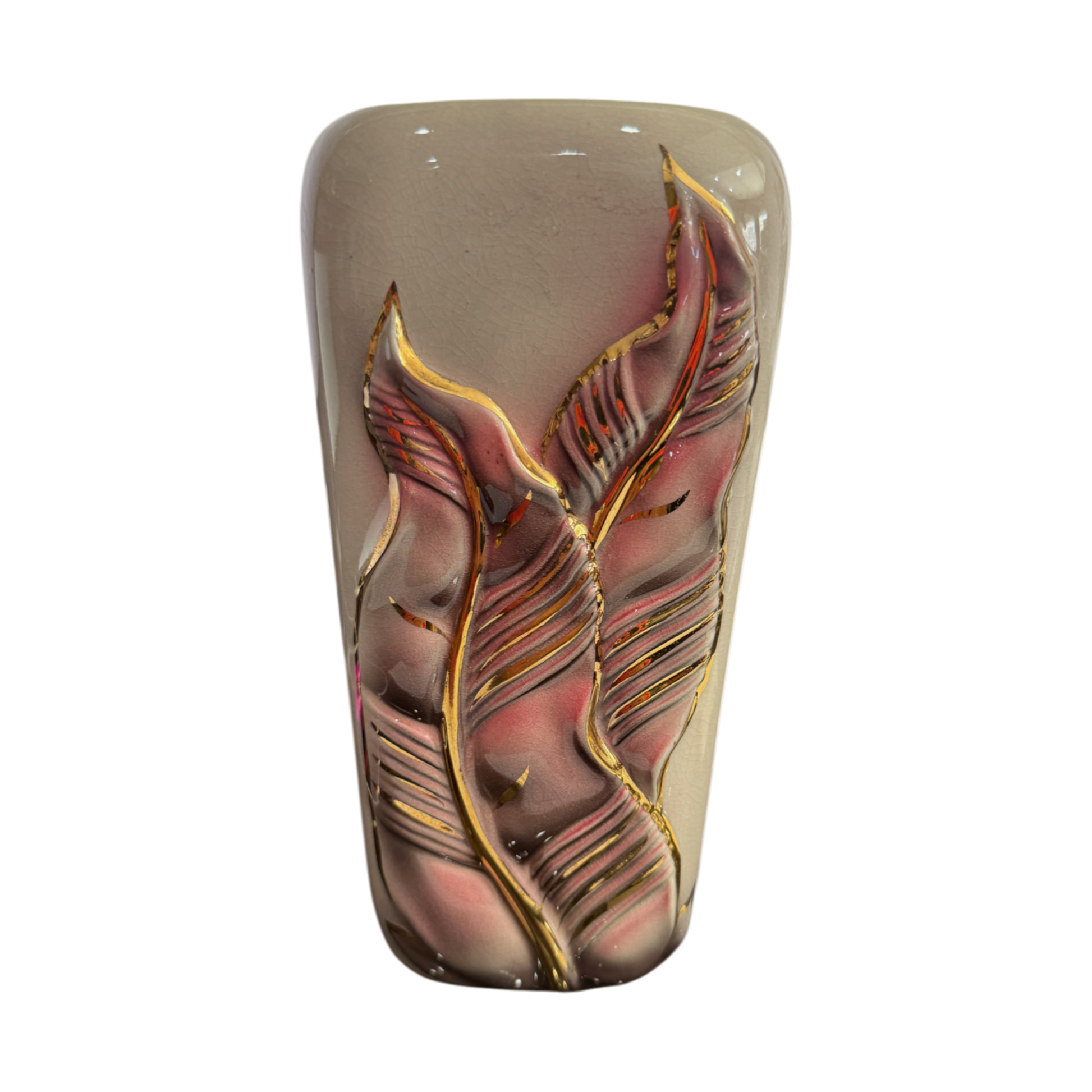 The Royal Copley Harmony Leaf Planter, measuring 8.5 inches, is a rare and exquisite piece distinguished by its elegant gold trim. Crafted with meticulous attention to detail, this planter showcases a harmonious leaf design that adds a touch of sophistication to any space. Its vintage charm and quality ceramic construction make it a valuable addition for collectors and plant enthusiasts alike, offering both aesthetic appeal and functional use for displaying your favorite greenery. This planter’s rarity and refined finish ensure it stands out as a unique decorative accent in your home or garden.